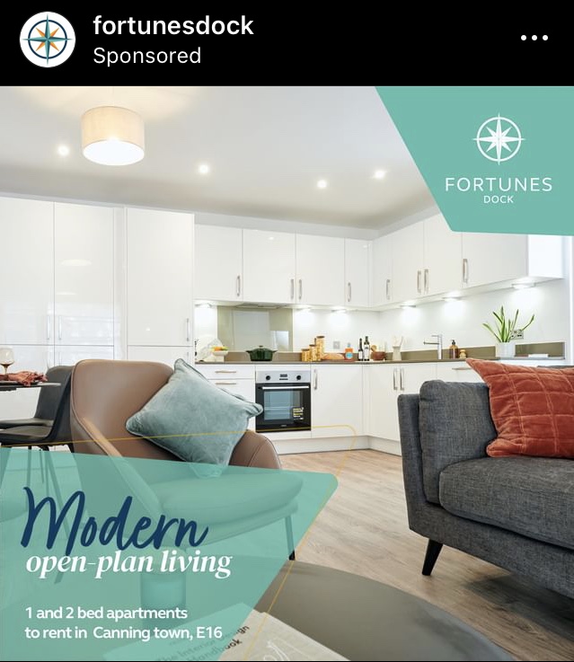 Of course, Instagram isn’t real life, but wherever I look around London at tower blocks going up, they’re all pretty much the same as what I get to see in the sponsored posts in my Instagram feed, so, in that sense those posts are strangely representative of real life for anyone seeking a home in London that isn’t old, damp and decrepit.