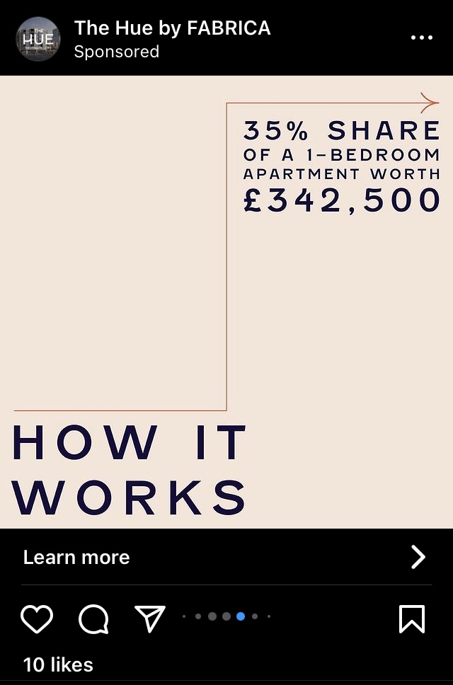 These are sponsored posts that I have no way of blocking out of my feed either, but my comments aren’t doing anything so instead I am going to try and post screenshots here with the actual information about these properties and how they fail to serve most Londoners.